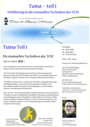 Verbindliche Anmeldung für Tuina Teil 1 + 2 Seminarwochenenden bitte bis spätestens 17. Juni 2013